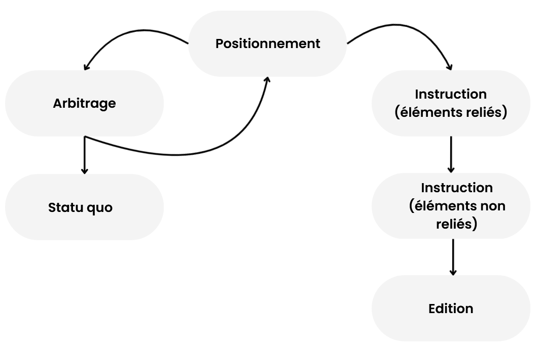 L'instruction de la résultante est réputée pouvoir débuter dès lors que chacune des bibliothèques rattachées a positionné (ou exclu) sa collection, sous réserve toutefois qu'il y ait une et une seule collection classée au rang 1. Dans le cas contraire, une situation d'arbitrage survient, de type 1 si plusieurs collections ont le rang 1, de type 0 si aucune n'a le rang 1. Un ou des repositionnements sont alors attendus.