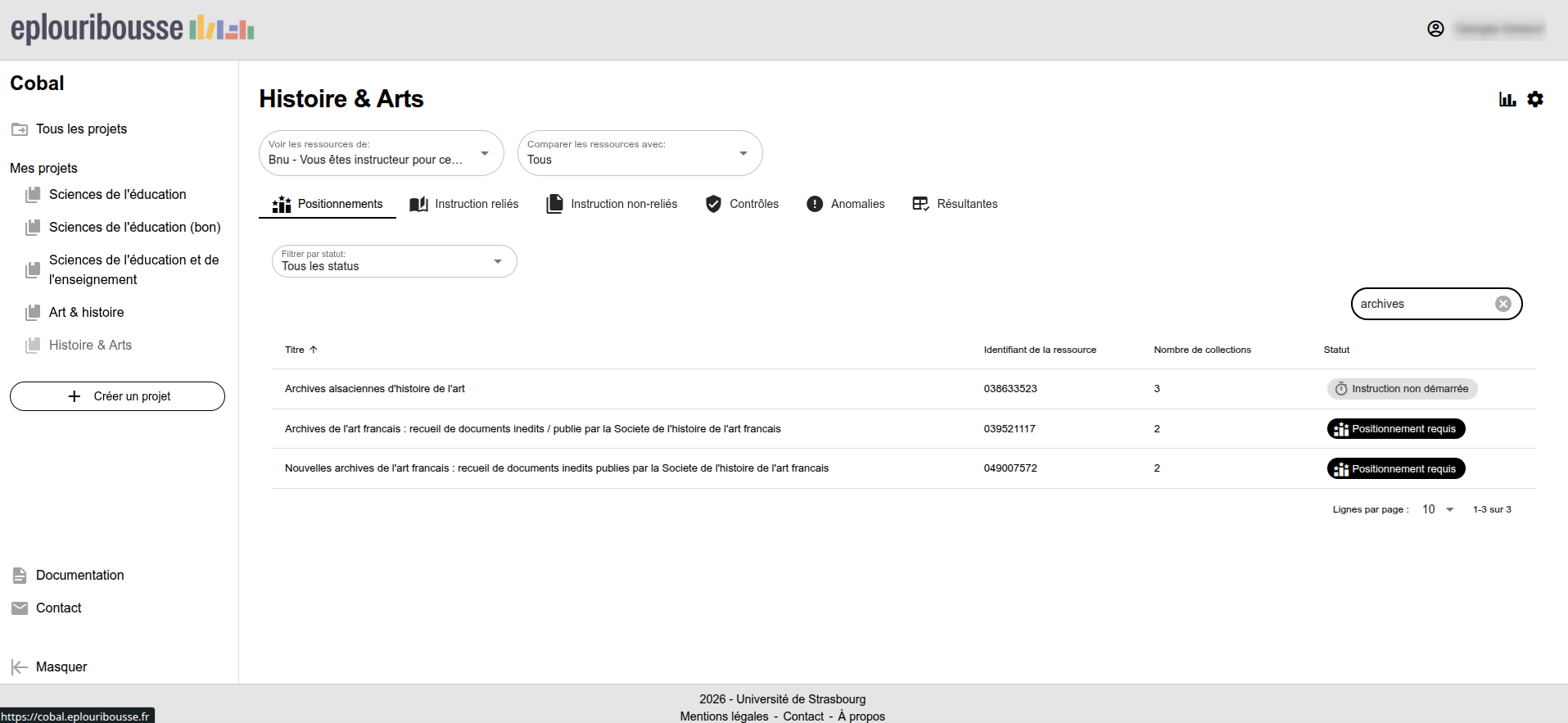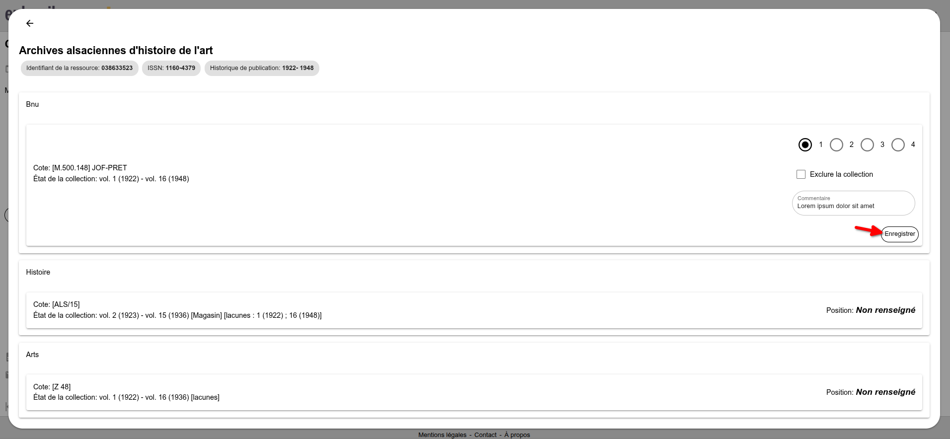 Une fois que toutes les collections d'une ressource sont positionnées, le statut des collections change :