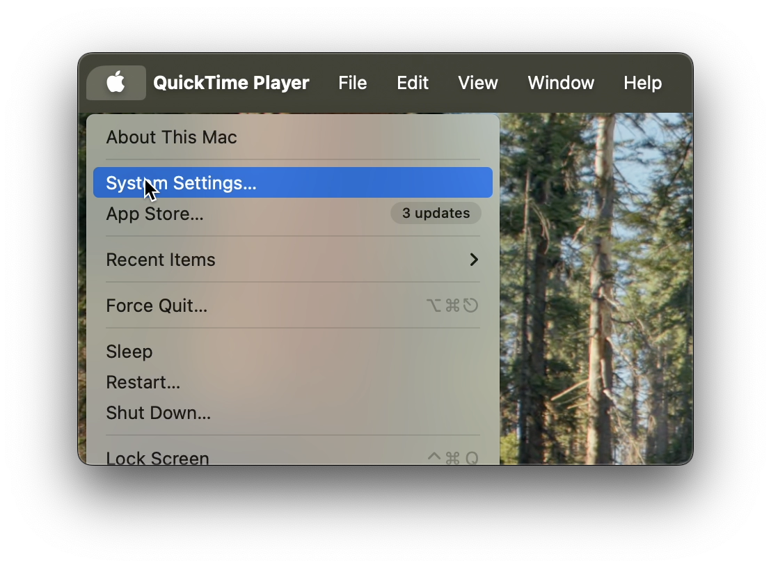 - Dans le menu Pomme , cliquer sur System Settings (Paramètres)