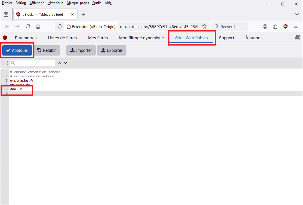 Ajout de sites Web fiables⚓