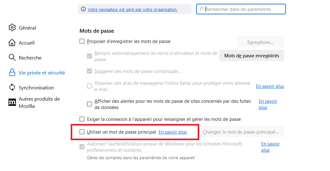Créer un mot de passe principal pour Mozilla Firefox